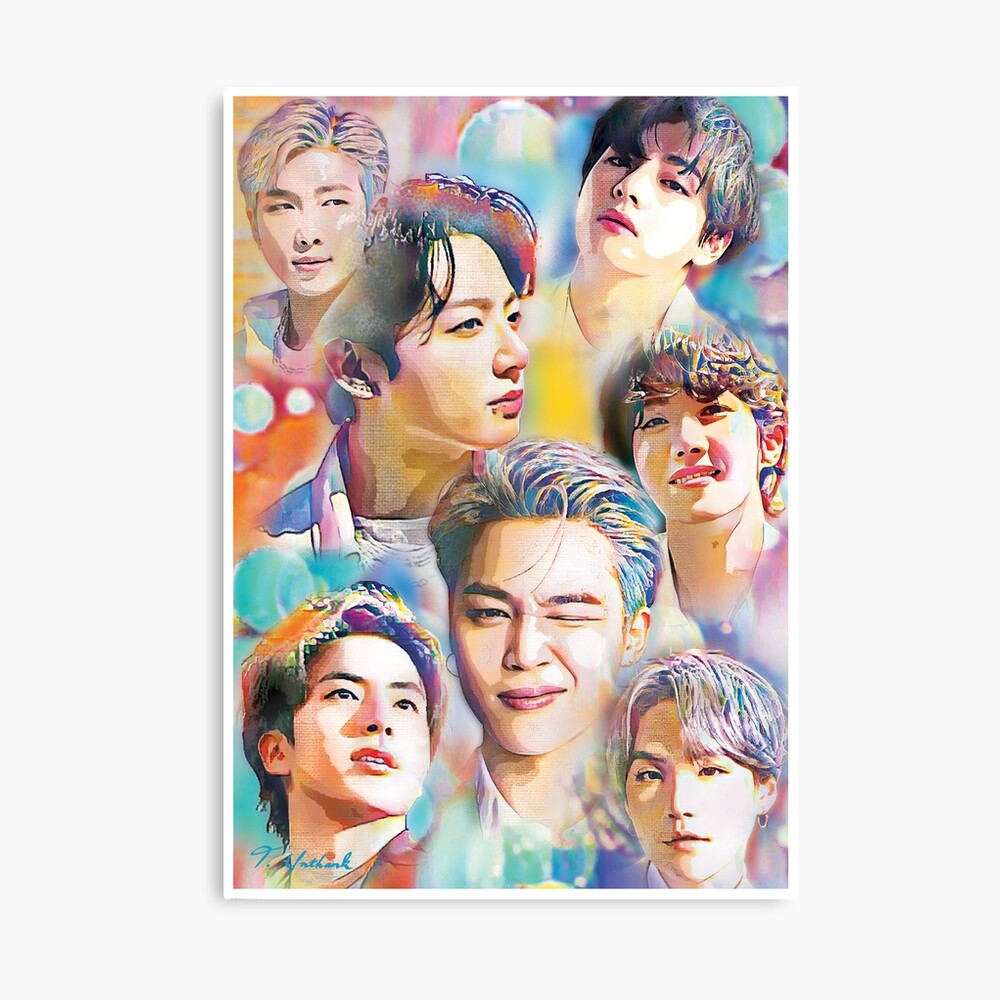 Beautiful, bright, colourful digital art print, with 0.5cm white edged border. Size: A4. Printed digitally on archival medium weight white paper. Would make the perfect gift for a die BTS fan!