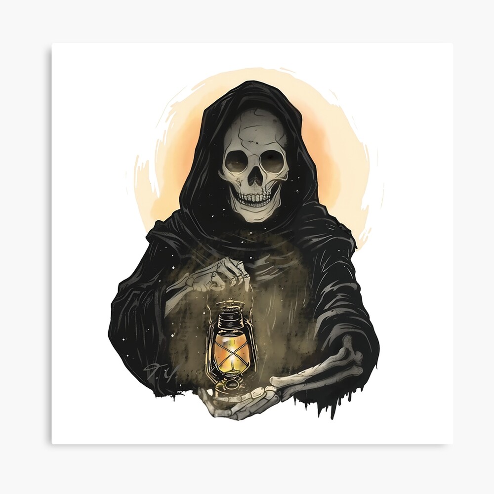 Step into the shadows with this haunting Grim Reaper artwork, featuring the iconic cloaked figure holding a glowing lantern to guide lost souls through the darkness. With its chilling detail and gothic atmosphere, this piece captures the eerie mystery of life, death, and everything in between. Perfect for Halloween lovers, gothic art fans, and anyone drawn to dark fantasy themes, this artwork makes a striking statement.