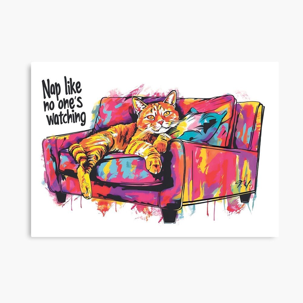 This vibrant artwork captures the ultimate mood of pure relaxation — a confident cat lounging on a colourful armchair without a care in the world. Created using a mix of watercolour and digital illustration, it blends bold splashes of colour with playful charm.